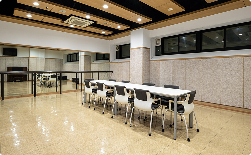 시설 | 대형거울(벽면 2면), 업라이트 피아노 1대, 테이블, 의자, 쇼파, 옷장 |